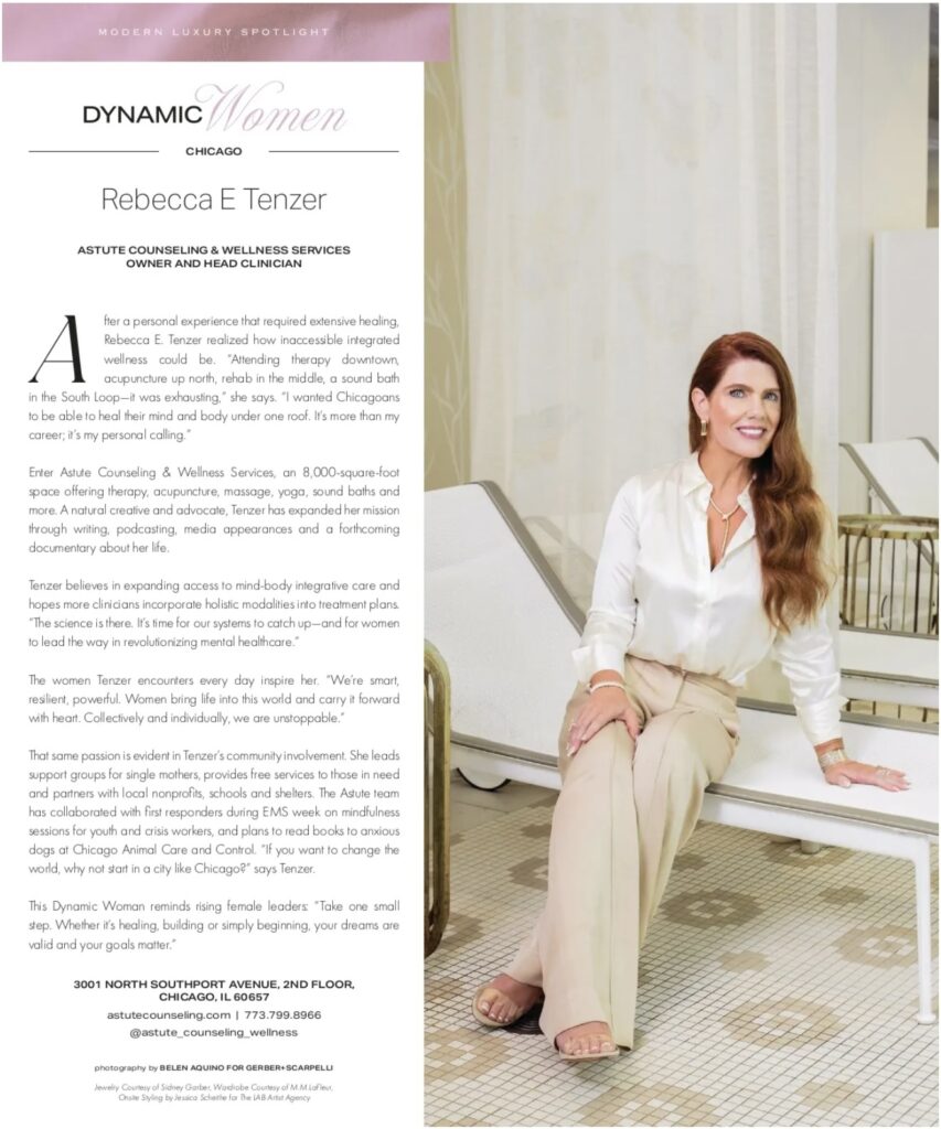Featured in Vogue, Modern Luxury, WGN & more — Rebecca Tenzer brings credible expertise and editorial style to every conversation.